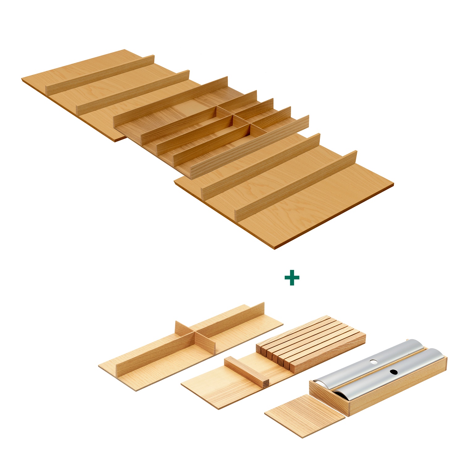 КОМПЛЕКТ лоток + делитель + держатели для фольги и для ножей, ФайнЛайн Линик 1000-1200 мм, глубина 500 мм, цвет ДУБ натуральный Kessebohmer