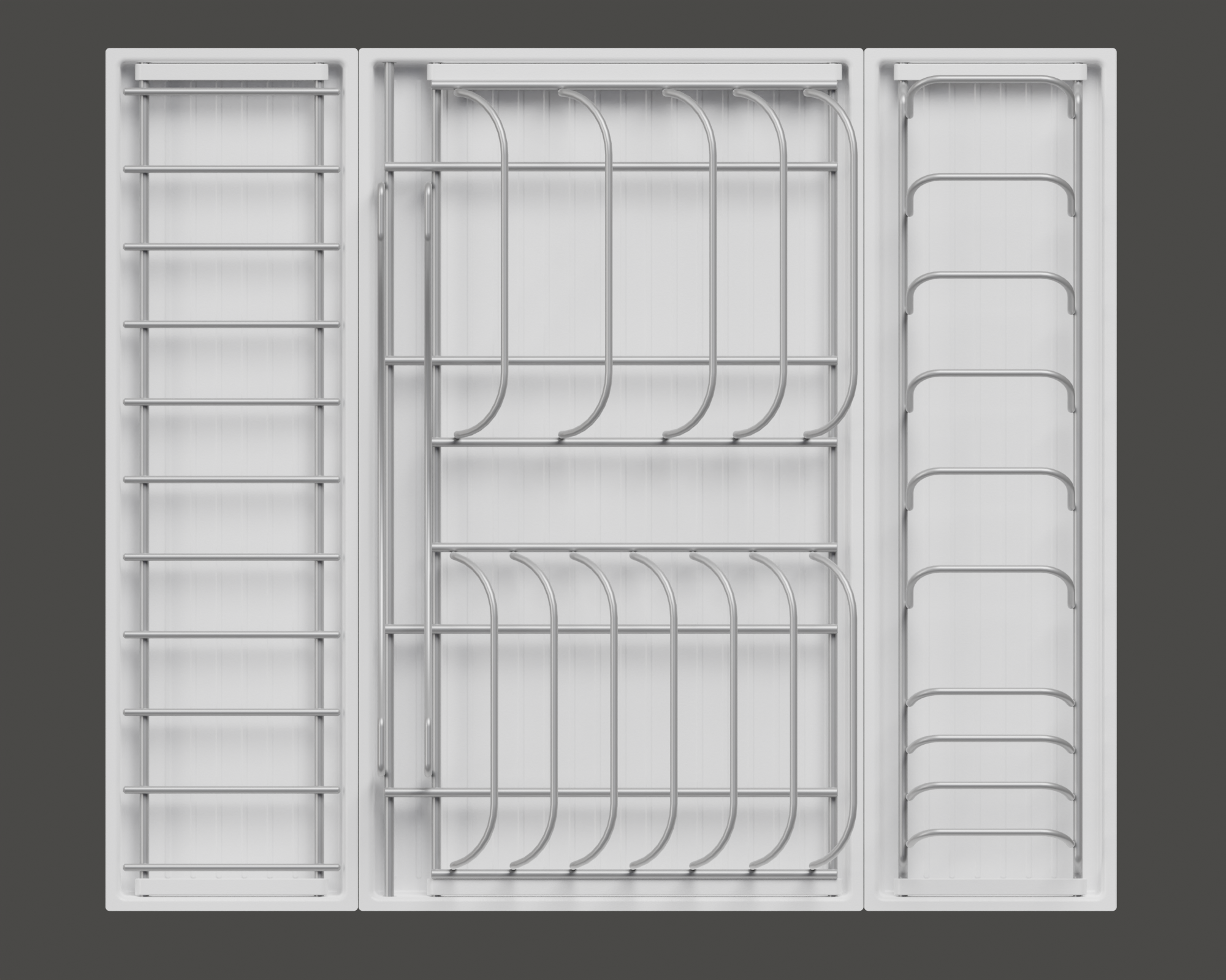 - 1 большой модуль для посуды + 1 большой модуль с решеткой + модуль для столовых приборов