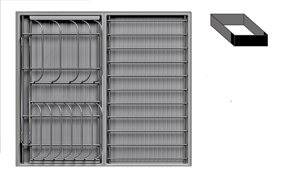 - 1 большой модуль для посуды + 1 большой модуль с решеткой + модуль для столовых приборов