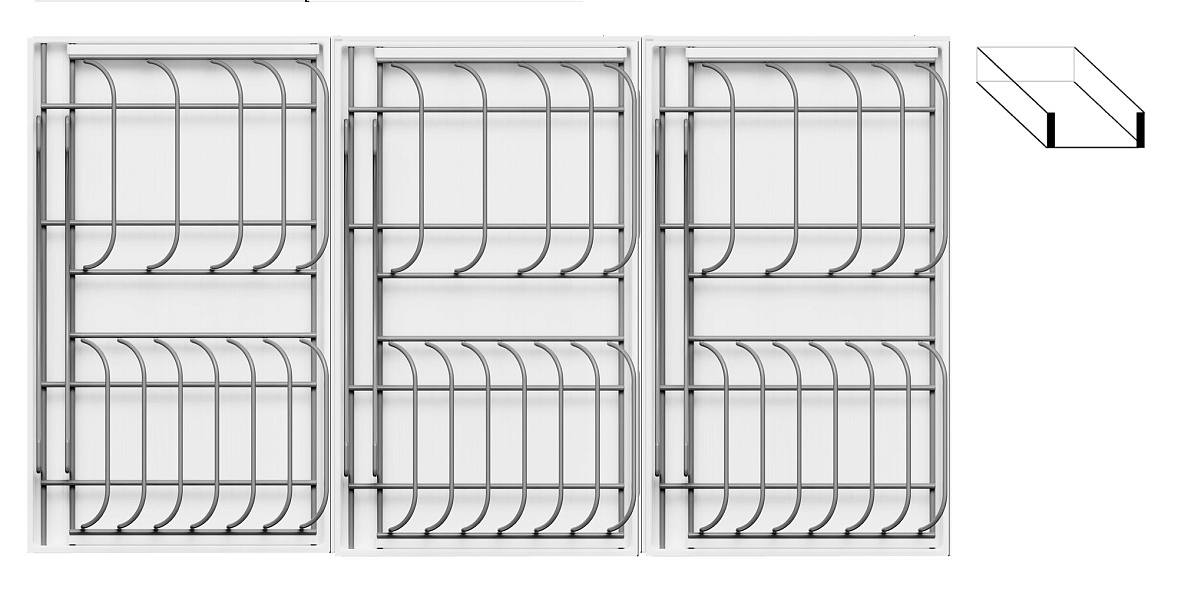 - 2 больших модуля с решеткой + 1 малый модуль с решеткой