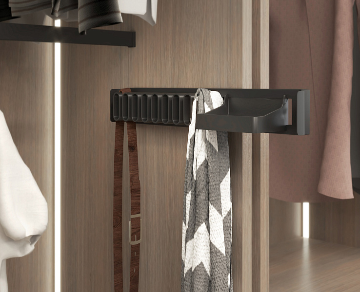Держатель для галстуков и ремней с полочкой выдвижной 320 мм Конеро D 345 мм цвет ЧЕРНЫЙ Kessebohmer | официальный магазин